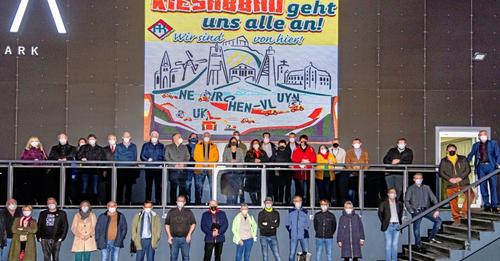 Neukirchen-Vluyn. Ein geschlossenes Signal schickten Verwaltung und Ratsmitglieder in Neukirchen-Vluyn am Mittwochnachmittag Richtung RVR-Verbandsversammlung. Vor der letzten Ratssitzung des Jahres postierten sich Stadt und Politik gemeinsam vor dem digitalen Banner am Viva Event- und Freizeitpark, um ein deutliches Zeichen gegen die Kiespläne zu setzen und doch noch auf die RVR-Politik einzuwirken.
