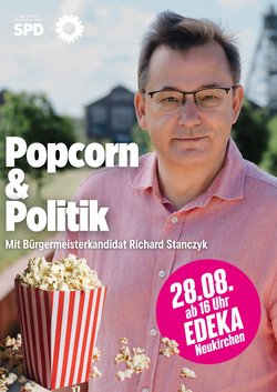 Die Veranstaltung findet am Donnerstag, 28. August, von 16 bis 18 Uhr vor dem EDEKA Raber (Mozartstraße 9, 47506 Neukirchen-Vluyn) statt. Während frisches Popcorn kostenlos verteilt wird, stehen Stanczyk sowie die Grünen und die SPD Rede und Antwort zu aktuellen politischen Themen.